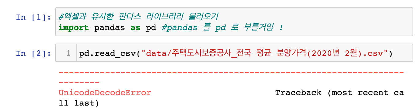 Python 공공데이터 다뤄보기 1. Pandas 써보기 (csv파일 읽기 , 행과 열 출력 , 유니코드 에러)