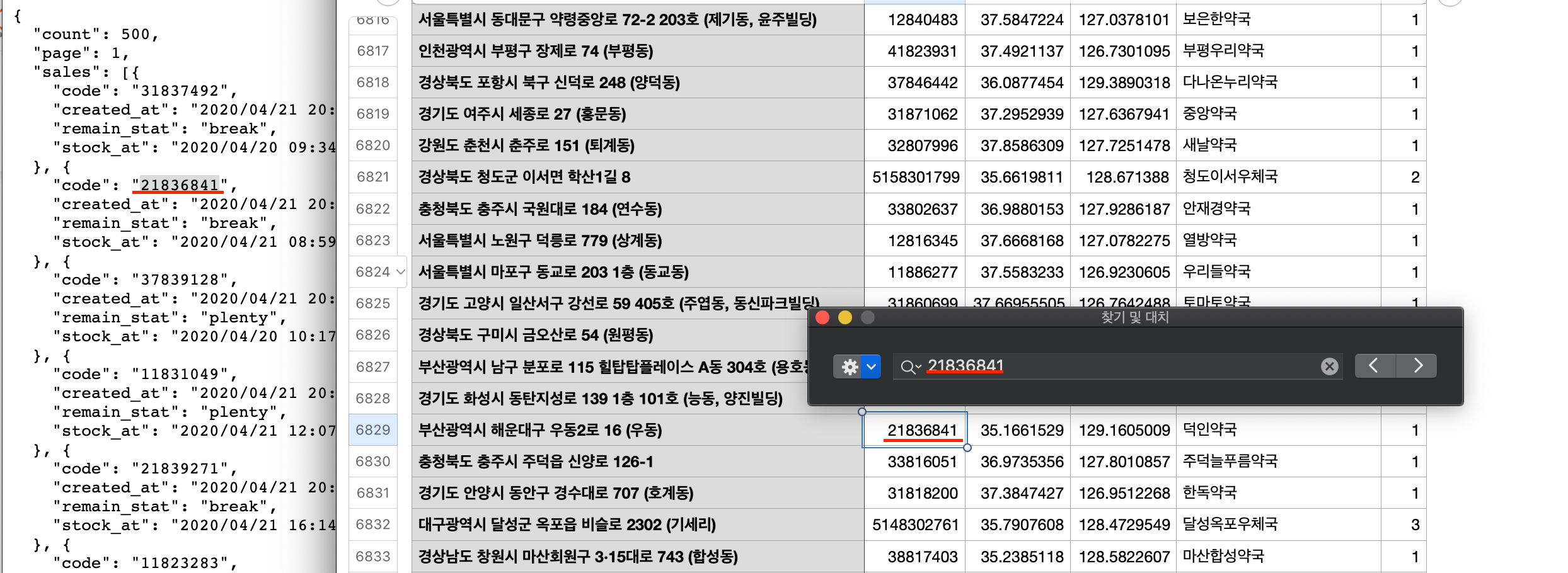 마스크 재고 상태를 확인할 수 있는 json 이다 ( 왜 판매처 , 재고를 같이 하지 않는거지 ??????)