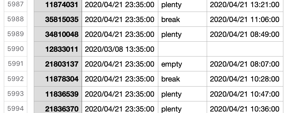 df_maskStatInfo = pd.DataFrame({'code':code,'created_at':created_at,
