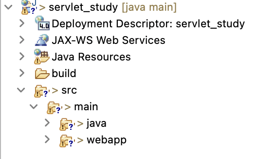우선 폴더의 구조는 이렇게 생겼다 webapp 에는 index.html 과 같은 정적 리소스들이 들어가게 된다