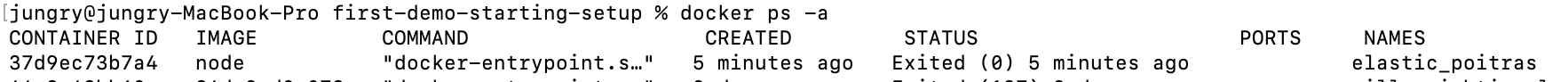 다시 docker ps -a 를 해보면 container 가 두개가 된 것을 볼 수 있다 !!