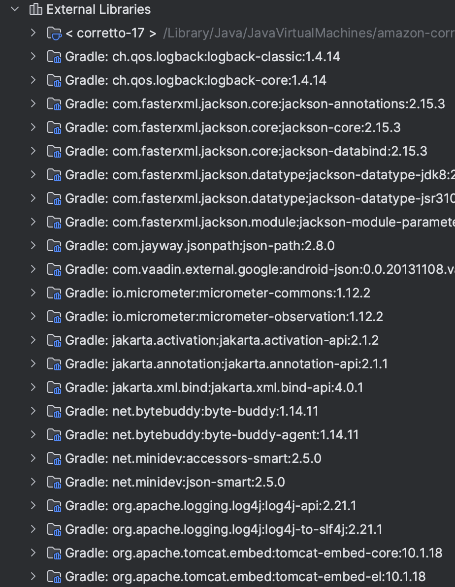 spring project 생성시 내가 추가한 라이브러리 이외에도 뭔가 엄청나게 많다 ..