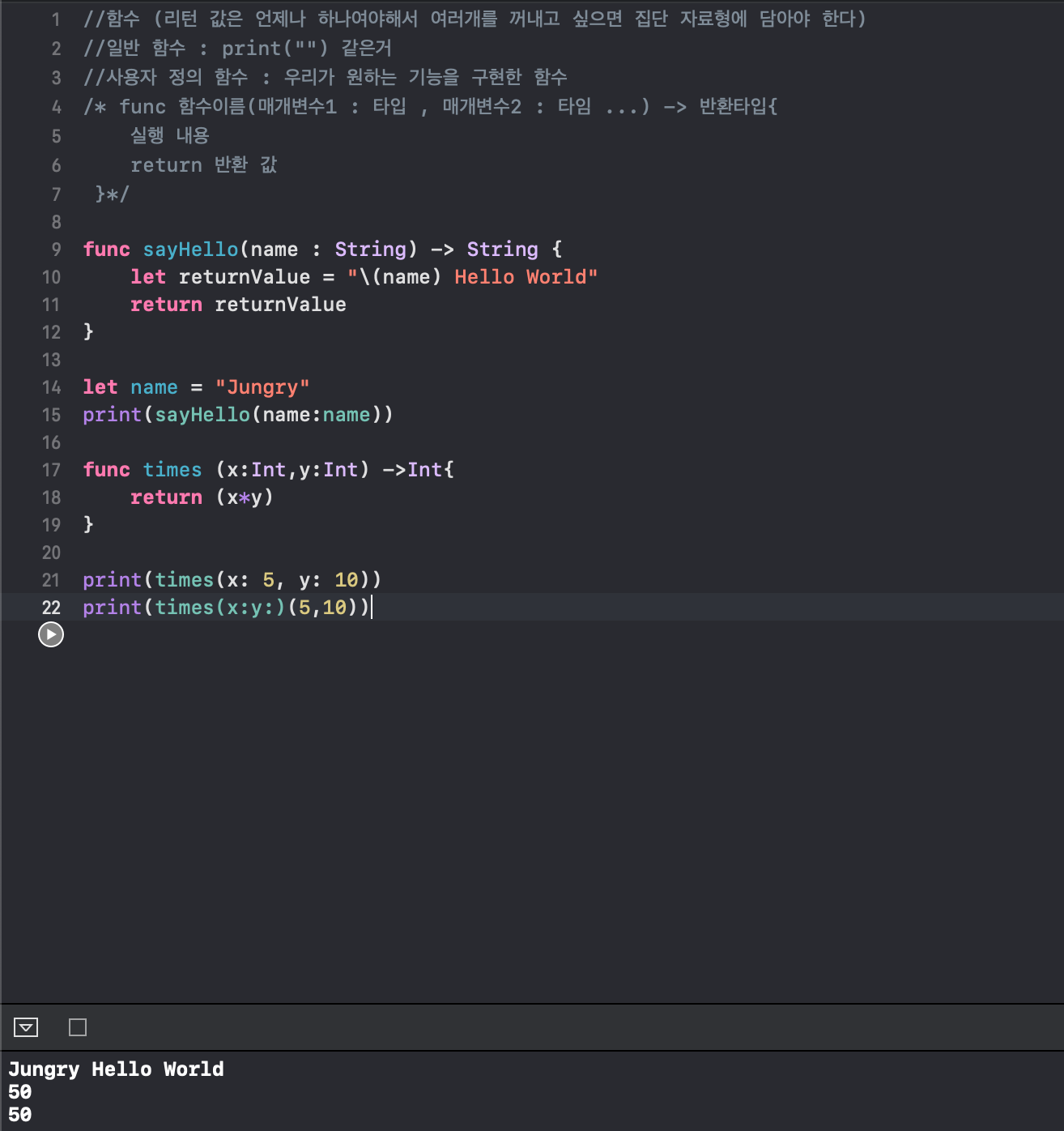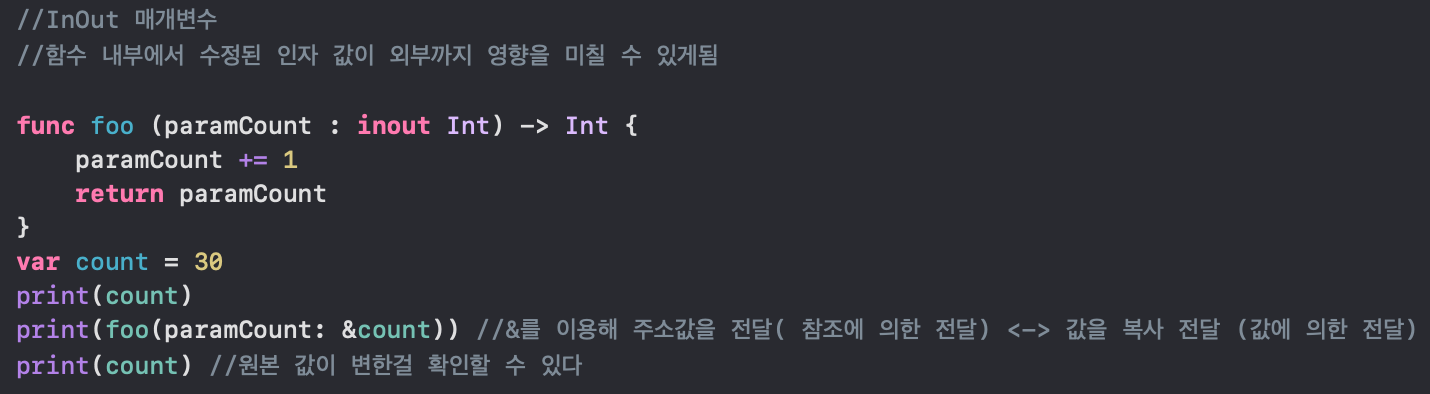 11. Swift 함수 (사용법 , 가변인자 , 매개변수) 본문